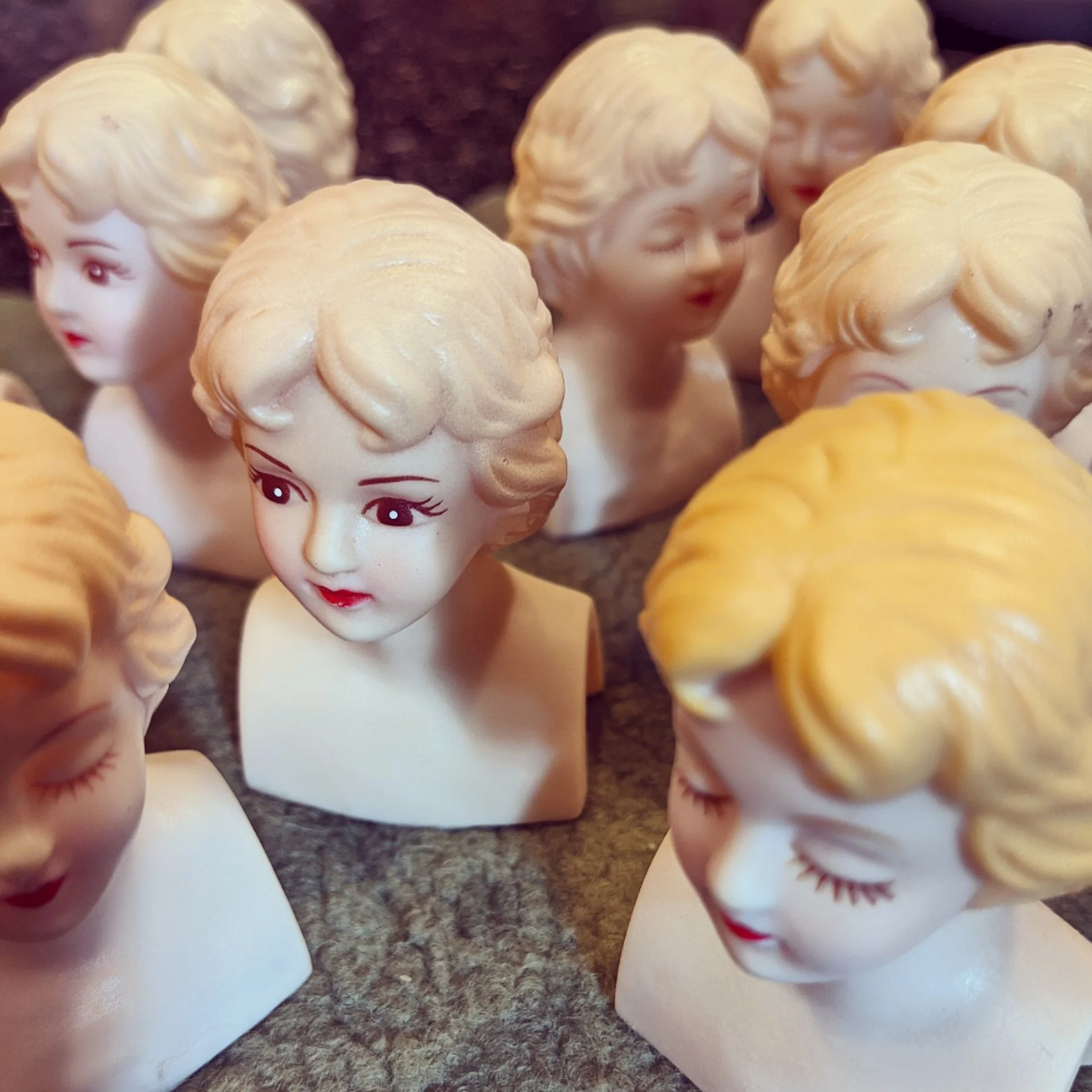 I also enjoy assemblage work, especially making people! Often inspired by old doll heads, I build figures and their visual narratives using lots of playful vintage elements. Many of my 3D works are articulated and interactive and full of details and surprises.